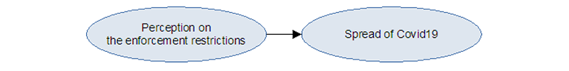 The perception of the enforcement restrictions (as perceived by transportation users) influences the spread of COVID-19. Implementation - analysis: Regression, or Structural Equation Model, see Figure 4.