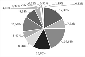 The subsequent questions were mostly multiple-choice, i.e. there was a note on the possibility of selecting at least one of the listed answers. Each question, through the presence of "Others" option, encouraged the construction of own answer, and it must be admitted that this option was eagerly chosen – thanks to it, respondents clarified their answers or indicated a completely new direction of thinking about the problem contained in the question. Each percentage in parentheses in this section of questions will indicate the percentages in relation to all selected answers in that particular question.